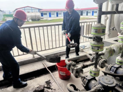 党员干部积极相应号召,带头在前,按照高标准、严要求,对生产现场的阀门法兰、仪器仪表、排水沟、储存罐、反应釜、管道等设施设备进行冲洗、清扫、擦拭,确保清洁全覆盖,做到不漏一处,不留死角。