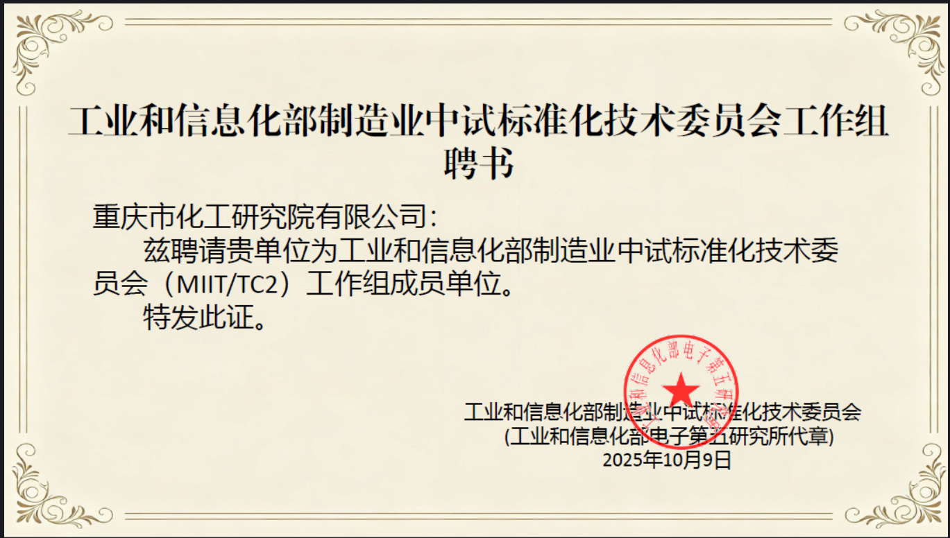 2025年10月9日,工业和信息化部制造业中试标准化技术委员会(MIIT/TC2)正式公布首批工作组成员单位名单,化研院凭借在化工新材料中试技术领域的深厚积累与创新能力,成功入选中试关键技术工作组首批成员单位,首批工作组成员单位覆盖原材料、装备制造、信息技术等重点领域。